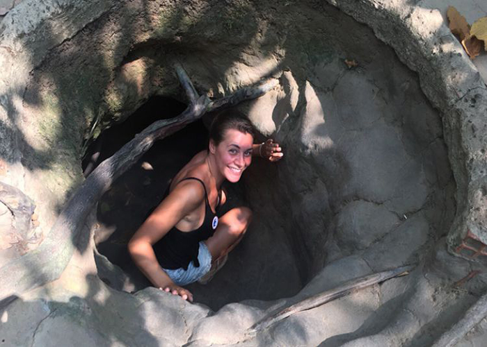 A tourist exploring Cu Chi Tunnels