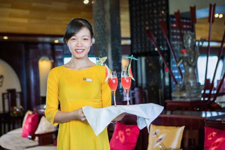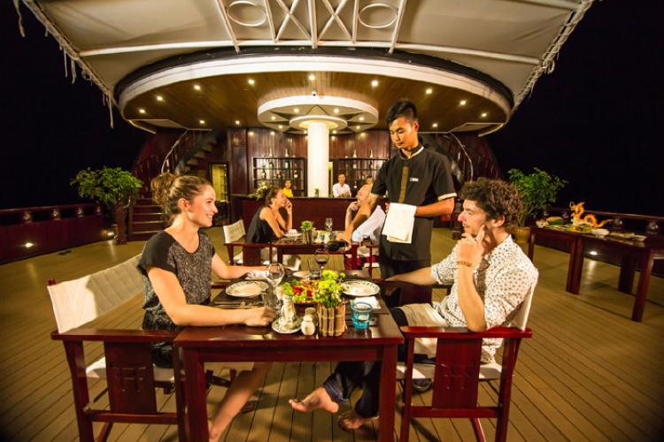 13:30 – 14:30: Set menu lunch served in the outdoor dining room (depending on the weather) while cruising into magnificent Bai Tu Long Bay; admire the fascinating limestone karsts on the way.