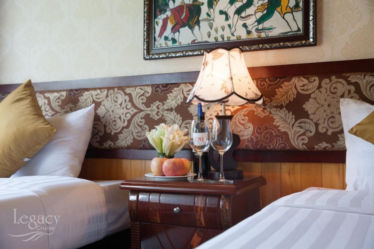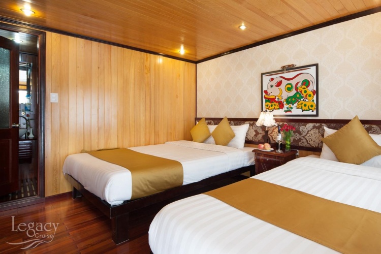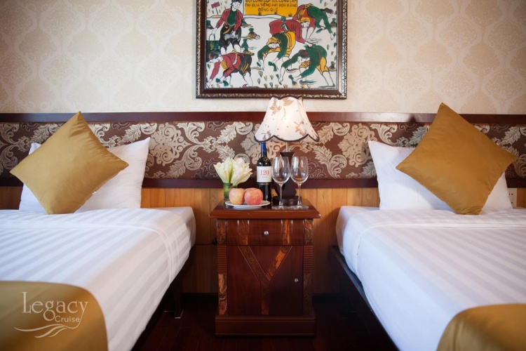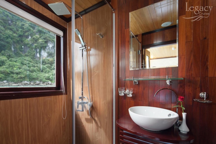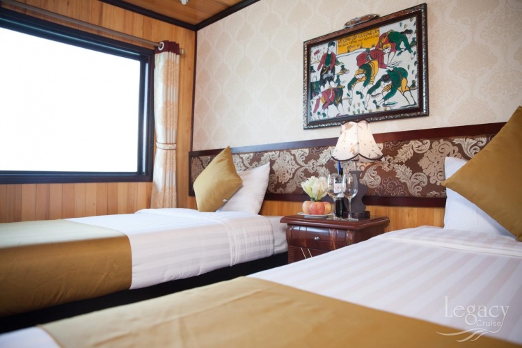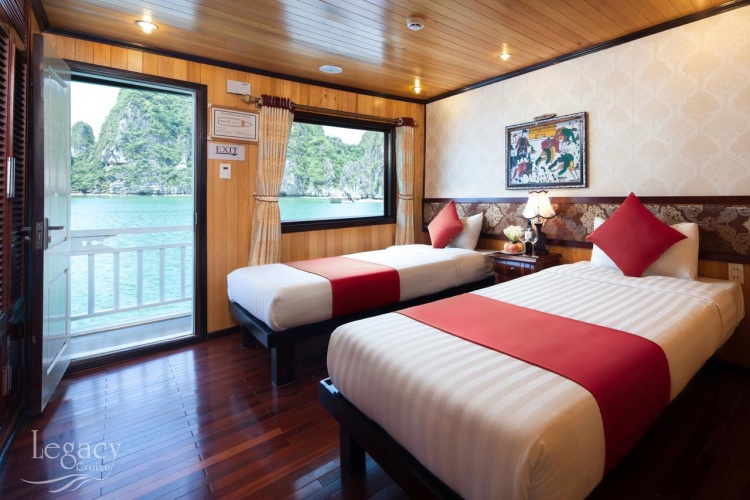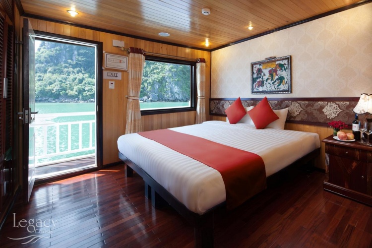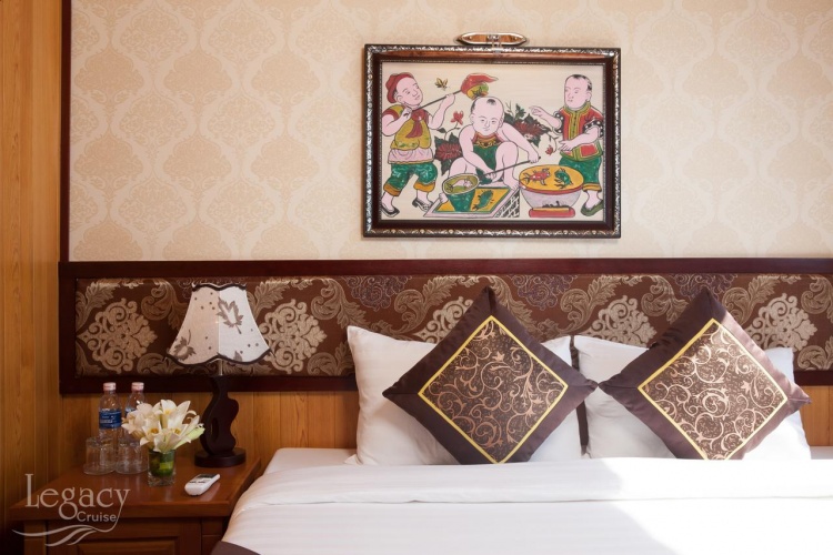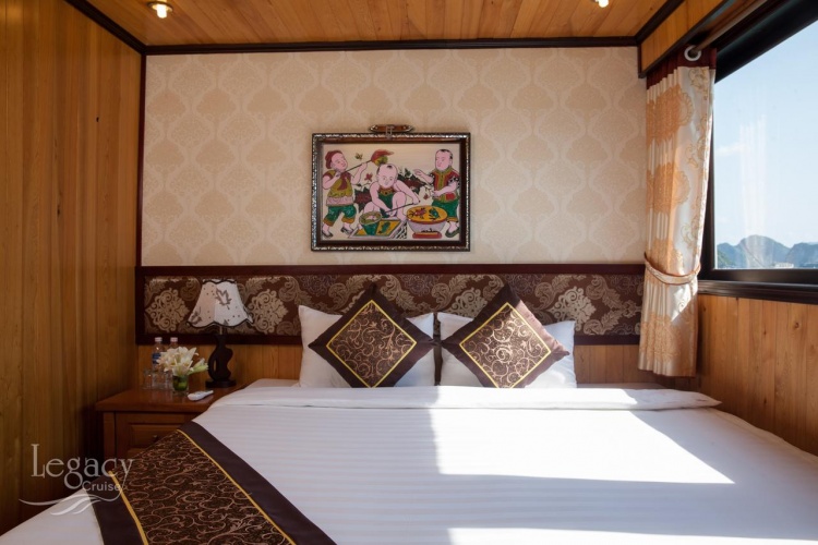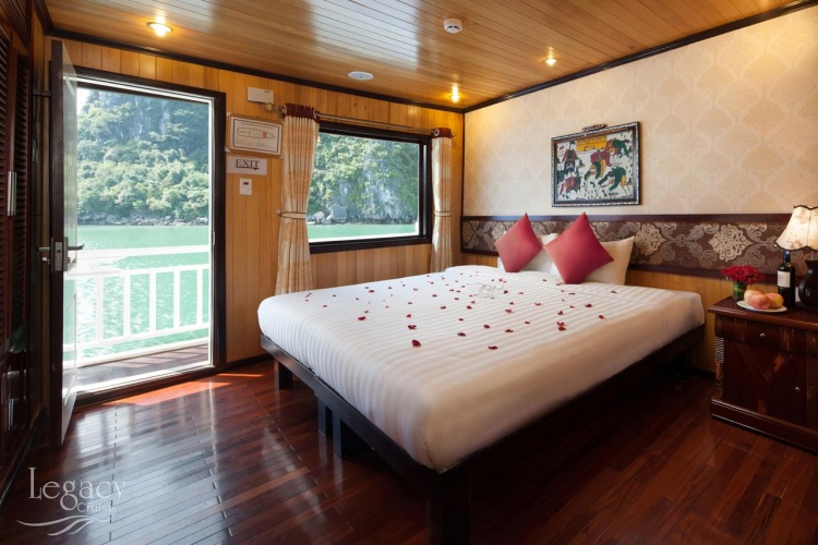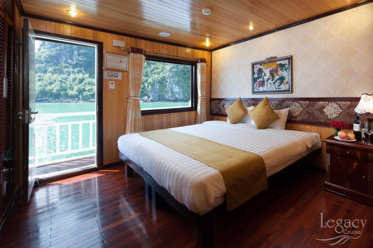 Noon: Around 12.30 arrive in Halong habour. You will be transferred to Legacy Legend boat by small tender, enjoy welcome drinks; check-in your cabin.