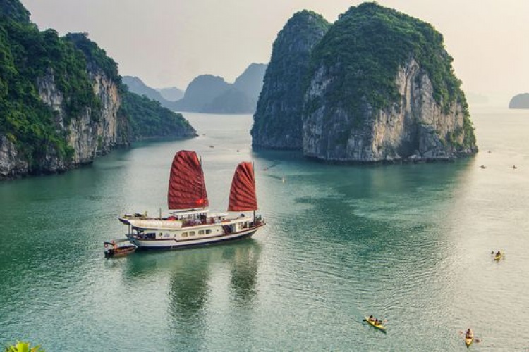 10.30: Cruise back to Thien Canh Son Cave to swim, kayak and visit the cave.