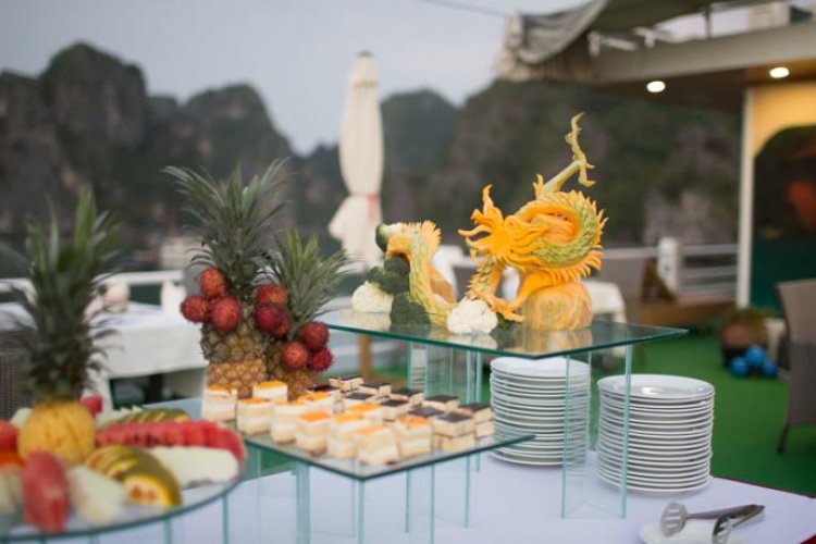 13:30: Cruising through Bai Tu Long Bay and having lunch with Set Menu